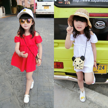 童装女童夏装2017新款韩版女宝宝裙子2-3-4-5-6岁儿童漏肩连衣裙