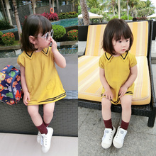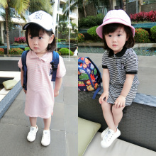 2017新款童装女童夏装小童裙子韩版女宝宝儿童POLO条纹连衣裙潮