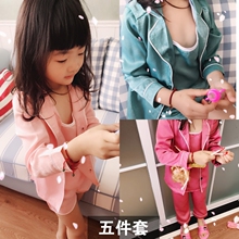 童装女童夏装2017新款2-3-4-5岁女宝宝睡衣五件套儿童家居服套装