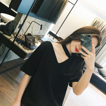 TAKIYAS SHOP 定制 时尚T恤 宽松中长款圆领短袖上衣女潮