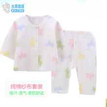 婴儿纱布衣服纯棉春夏装新款宝宝长袖套装薄款睡衣空调服0-1岁
