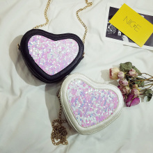 女包2017韩版爱心形迷你小包包个性亮片链条包休闲百搭单肩斜挎包