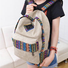 小清新森系中学生双肩包民族风书包背包女韩版潮学院风旅行包帆布