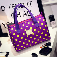 韩版新款圆点圆筒水桶包大容量手提化妆包家庭收纳包女包休闲包女
