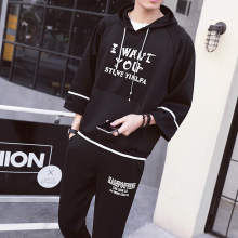春季男士连帽卫衣运动服套装男装潮七分袖宽松套头青年时尚休闲服