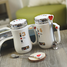 包邮简约陶瓷情侣对杯情侣杯咖啡杯马克杯带盖创意水杯牛奶杯礼物