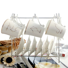 创意简约咖啡杯套装 欧式陶瓷咖啡杯6套装 骨瓷咖啡杯带碟勺架子