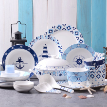 创意欧式地中海碗碟套装骨瓷器碗盘组合家用餐具简约韩式陶瓷2人