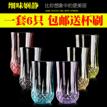 无铅彩色玻璃杯子套装家用泡茶水杯茶杯6支彩盒装送杯刷加厚耐热