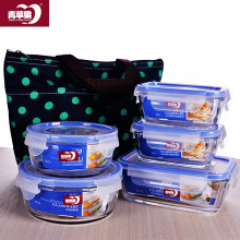 密封 青苹果耐热钢化玻璃保鲜碗套装 微波炉冰箱收纳便当饭盒带盖