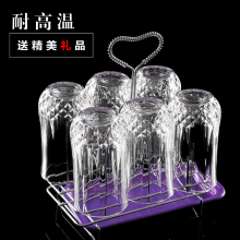 加厚 耐热 透明 果汁杯茶杯 饮料杯子 家用 玻璃杯水杯架套装包邮