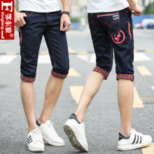 夏季薄款高弹力牛仔短裤男装七分裤弹性修身小脚青年男裤子7分裤