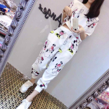 夏季新款修身大码女装九分裤哈伦裤短袖T恤女运动服休闲套装女夏
