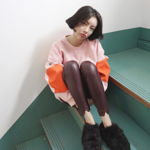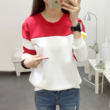 韩国ulzzang原宿风潮女加绒加厚拼接拼色撞色宽松套头卫衣女秋冬