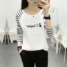 条纹长袖t恤女秋宽松上衣服女初中学生打底小衫秋季女装2016新款