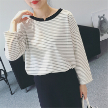 宽松条纹T恤秋季女装2016韩版新款休闲大码圆领长袖t恤女上衣外穿