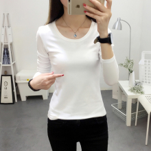 白色长袖t恤女修身春秋打底衫女百搭短款女士上衣体恤紧身纯色t恤