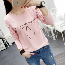 长袖t恤女秋季新款女装V领初中学生宽松百搭打底衫女衣服韩版2016