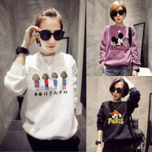 加厚2015秋冬新款女装套头外套卡通印花大码加绒卫衣女韩版潮学生