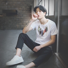 凡兔夏季圆领男生印花短袖T恤男棉半袖学生韩版潮修身体恤夏装