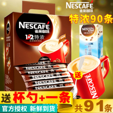 送杯正品雀巢咖啡1+2特浓速溶三合一香浓特醇咖啡90条装盒装新货