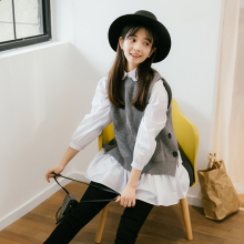 宽松毛衣女两件套纯色上衣日系百搭翻领长袖春装7471