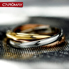 卡洛美饰品 韩国时尚玫瑰金钛钢三环戒指女 情侣食指戒中指戒指环