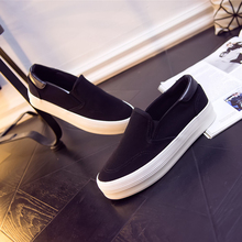 2017厚底布鞋女一脚蹬黑白色帆布鞋学生韩版潮平底懒人鞋百搭女鞋