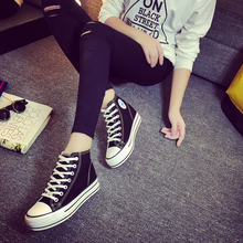 2017新款夏季黑色高帮帆布鞋女街拍小白鞋学生百搭春韩版平底板鞋