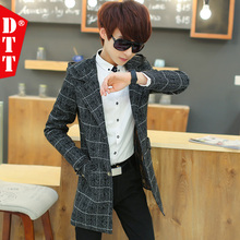 2017新款春季男士风衣中长款学生外套韩版潮流修身呢子大衣男帅气