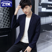 西装男春季新款修身款青少年休闲韩版西服潮男青春流行格子西装男