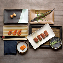 创意日式古朴窑变陶瓷陶艺手绘特色餐厅餐具菜盘寿司盘子长方盘