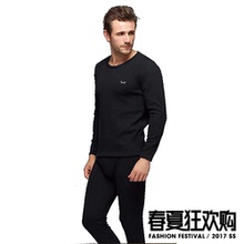 MiiOW/猫人保暖内衣男士秋衣秋裤男士四面弹圆领贴片套装561114