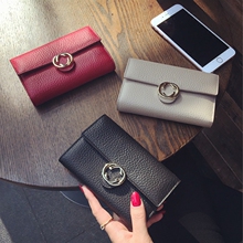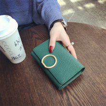 欧美大牌钱包女短款真皮三折潮搭扣2016新款金属扣牛皮卡位零钱夹