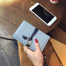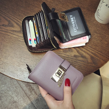 2016新款韩版时尚女士短款钱包真皮薄搭扣撞色牛皮大钞小钱夹卡潮