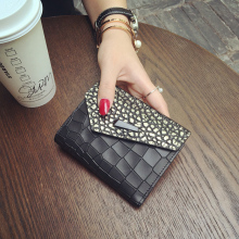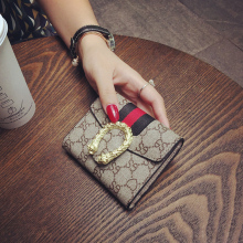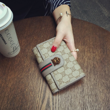 2016新款大牌定制真皮钱包女短款三折潮搭扣欧美时尚印花牛皮钱夹
