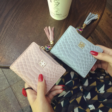 2016新款真皮蛇纹钱包女短款两折薄搭扣时尚流苏牛皮小钱夹卡位潮