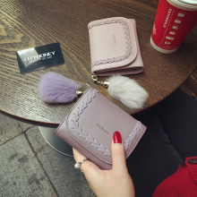 CITYHONEY定制真皮大牌短款钱包女三折搭扣潮编织兔毛流苏牛皮夹