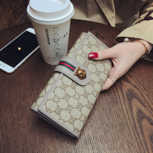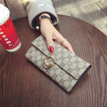 2017新款欧美真皮长款钱包女搭扣大牌印花牛皮手拿多卡位手机钱夹