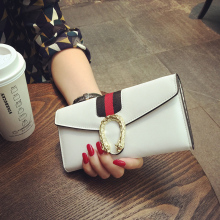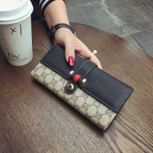 2017新款大牌简约搭扣长款钱包女真皮OL拼色牛皮大钞手机卡位钱夹