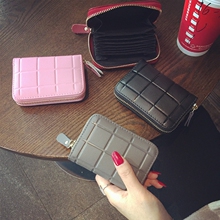新款简约真皮女士拉链小卡包潮欧美时尚格子牛皮零钱袋风琴多卡位
