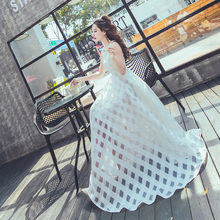 枪枪家2017夏新名媛淑女气质显瘦高腰格子无袖背心连衣裙女士长裙