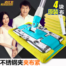 洁仕宝夹固式懒人平板拖把 旋转木地板拖布 家用地拖托把擦地墩布