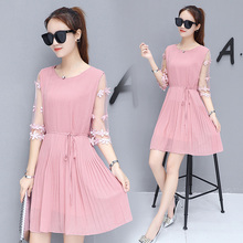 雪纺连衣裙女2017夏季新款韩版时尚气质仙女裙修身中长款a字裙子