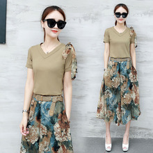 2017夏季新款韩版时尚套装裙子女装气质名媛两件套雪纺a字连衣裙