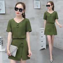 2017夏季新款韩版V领上衣短裙两件套包臀裙子套装女装时尚连衣裙