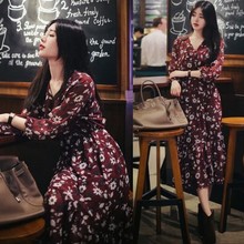 200斤胖mm显瘦春季新款女韩版中长款连衣裙高腰碎花雪纺长袖女裙