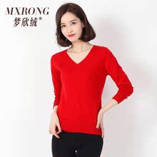 梦欣绒2016秋冬新款v领毛衣女套头打底针织衫短款纯色修身打底衫