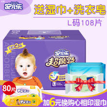 安儿乐 超能吸纸尿裤安尔乐婴儿尿不湿L码108片婴儿纸尿裤男女尿