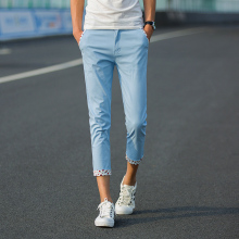 2016夏季男装弹力九分裤韩版青少年翻边薄款9分裤子直筒小脚裤潮